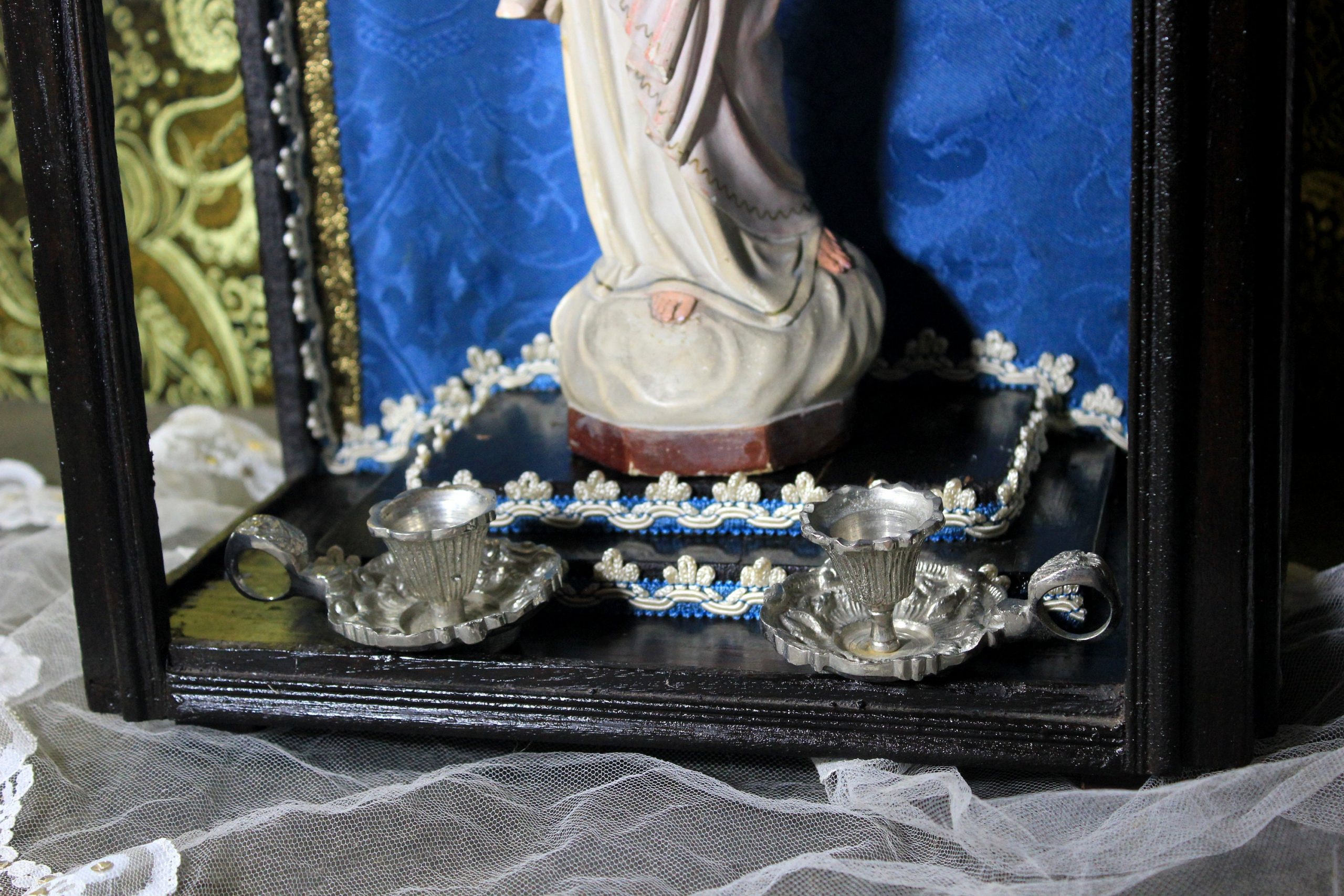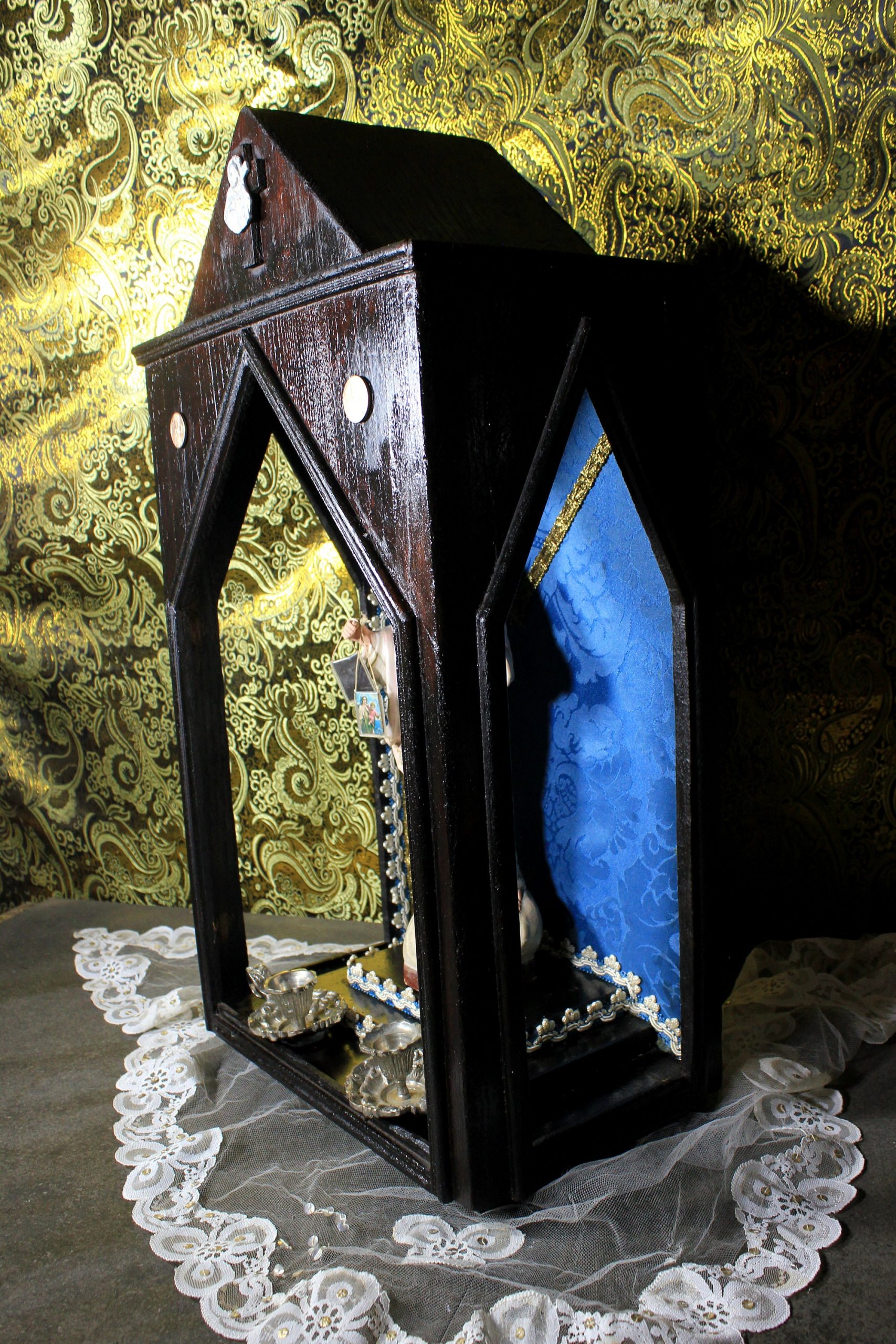 Antigua capilla de madera, para altar. Estilo gótico. Es de finales del siglo XIX o principios del XX. En muy buen estado. Su interior se encuentra forrado con seda, Se ha procedido a su limpieza y solamente se ha intervenido en la nutrición de la madera.