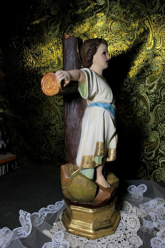 Este San Juanito es de principios de siglo XX. Hecho de escayola, policromada .