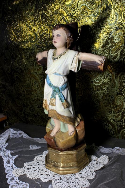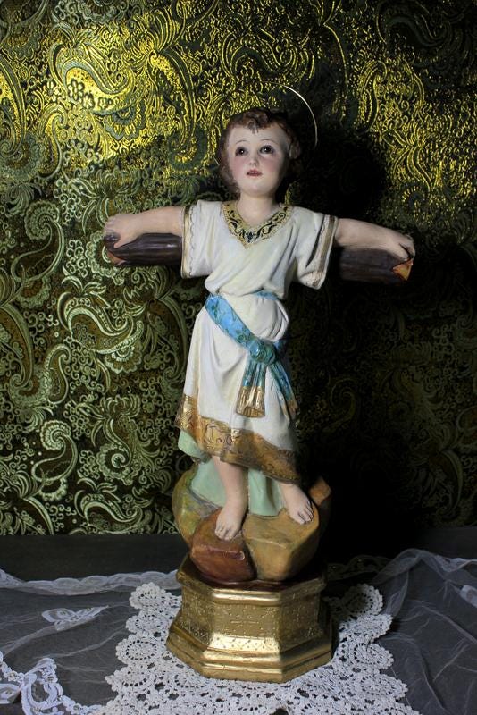 Antiguo Niño Jesús, Escultura Religiosa, Antigua Escultura de Jesús, Escultura Escayola, Niño Ojos Cristal, Niño Olot.