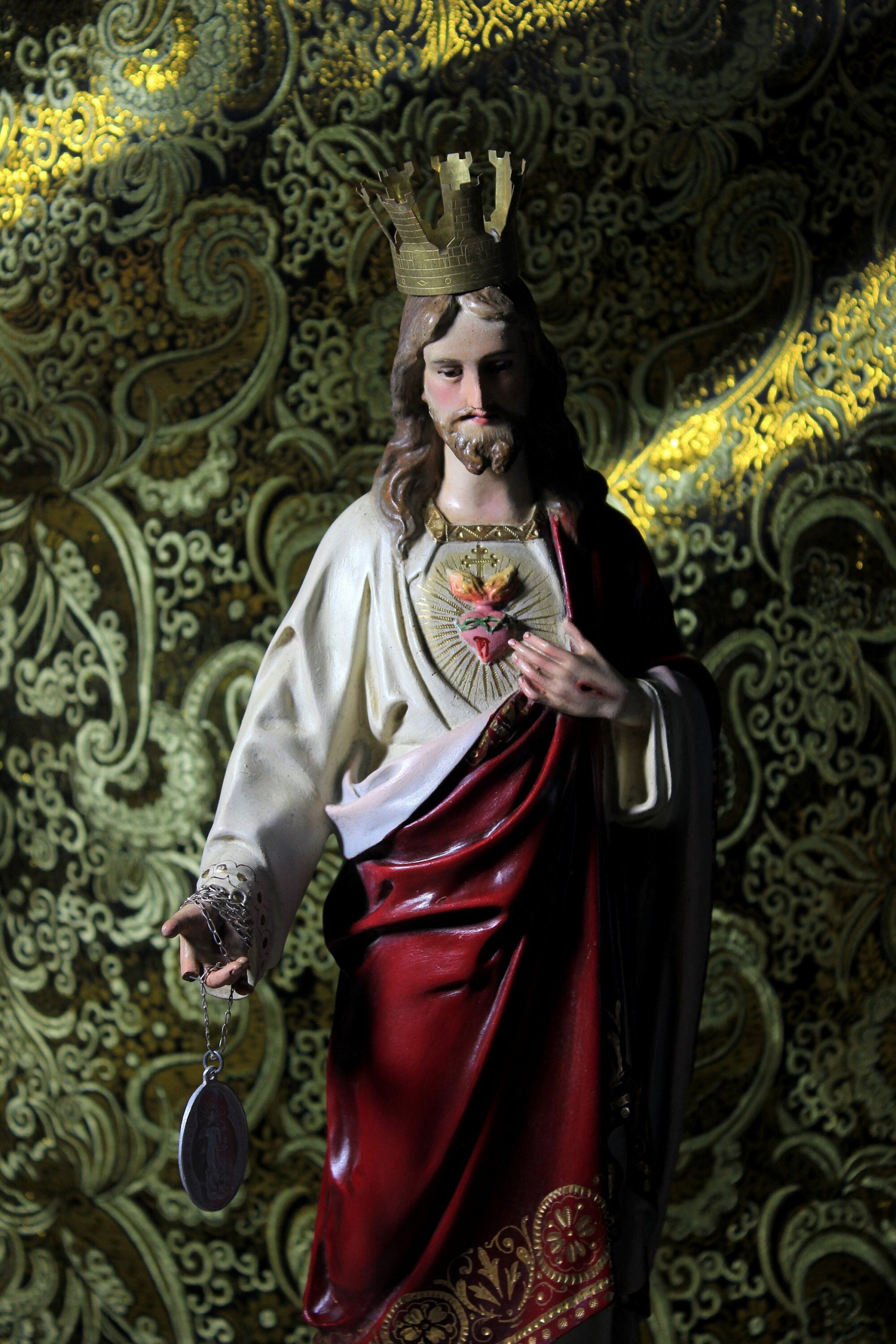 Escultura Sagrado Corazón Jesús, Escultura de Jesús 44cm, Sagrado Corazón, Figura de Jesús, Escultura Escayola Jesús, Ojos de Cristal, Olot.