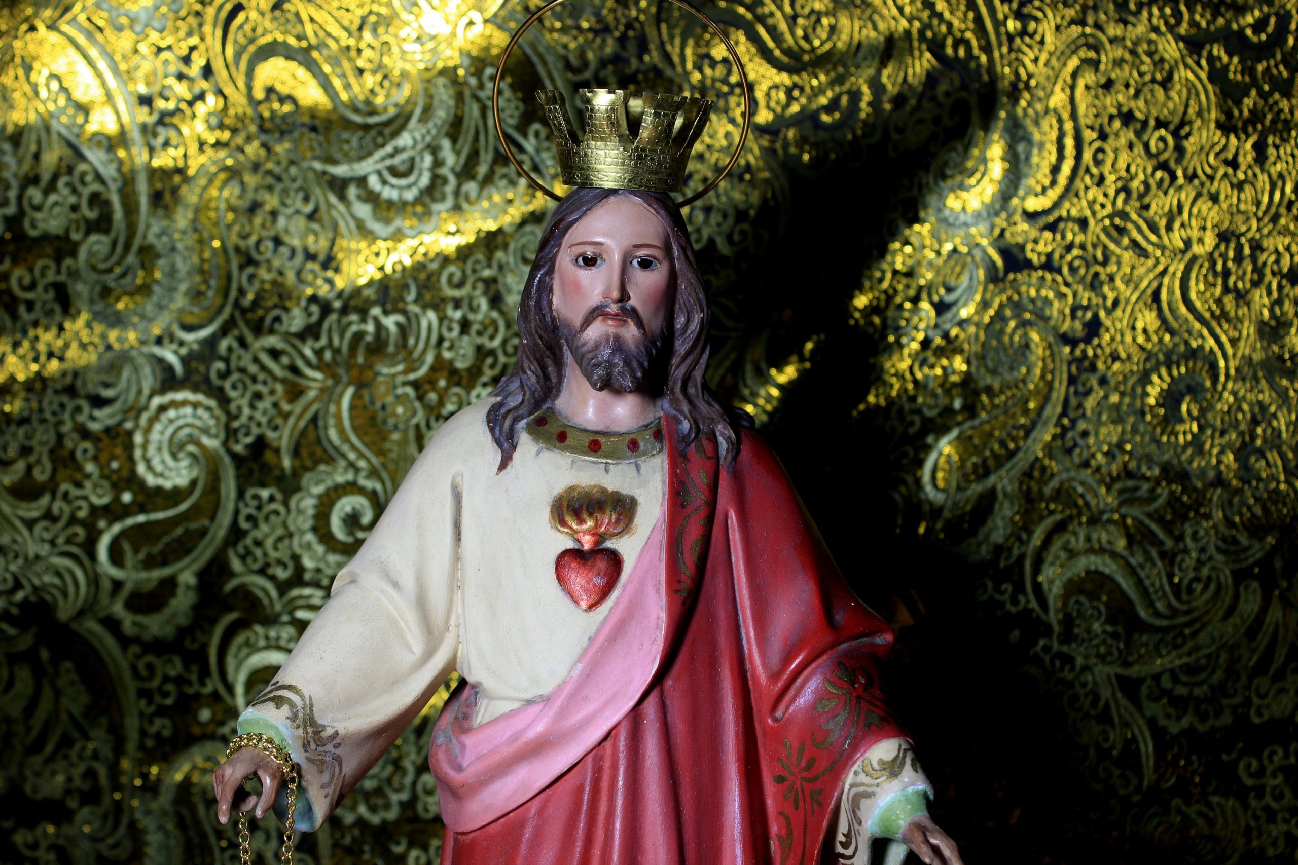 Escultura Sagrado Corazón Jesús, Escultura de Jesús 56cm, Sagrado Corazón, Figura de Jesús, Escultura Escayola Jesús, Ojos de Cristal, Olot.