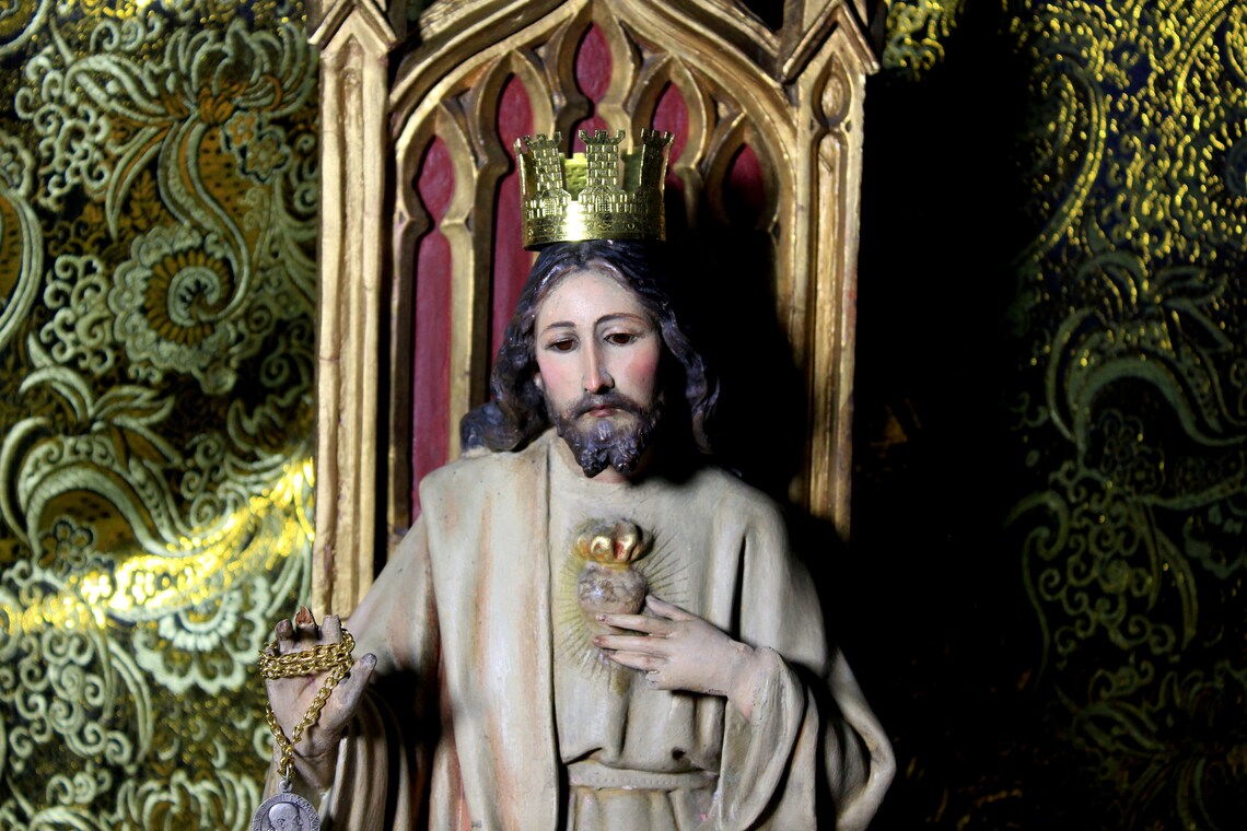 Magnífica escultura religiosa del Sagrado Corazón de Jesús Entronizado. Se trata de una talla estucada y policromada de madera del Siglo XIX. Pieza de coleccionista, iglesia.