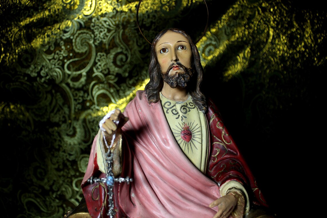 Jesús en Trono Antiguo, Jesucristo Entronizado, Figura Religiosa, Sagrado Corazón de Jesús